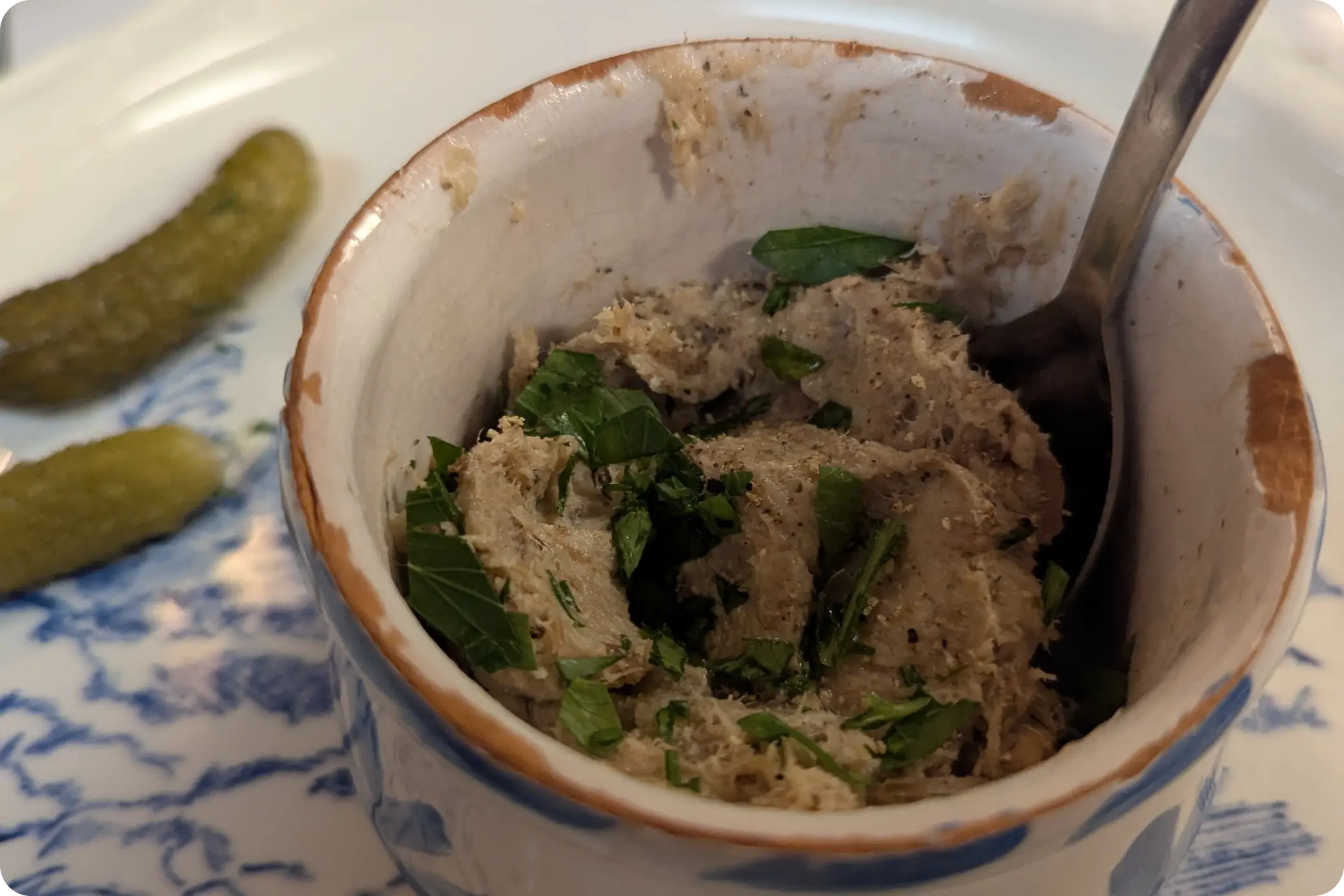 Pendant deux mois, Arlette partage son livre de recettes avec Fatima, qui n’a de cesse depuis de travailler et retravailler ces recettes. C’est un véritable héritage qui est omniprésent dans le bouchon : aux murs, des photos d’Arlette recevant des prix côtoient un portrait de la famille Hugon, jauni par des années de bons et loyaux services. Plus loin, une photo de l’ancienne cheffe entourée de Bocuse et Petitrenaud. “On l’a tous celle-là !” nous confie Annick, cabotine. Dans cette salle de six tables, tout est fait pour qu’on se sente comme à la maison : le mobilier préservé de l’ancienne patronne ajoute un agréable cachet suranné à ce lieu. Particulièrement ce magnifique piano de cuisine que l’on peut apercevoir depuis la salle, vieille machine apprivoisée par Fatima pour ravir nos estomacs.
